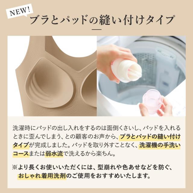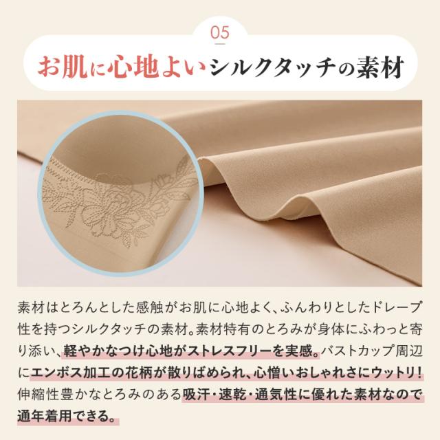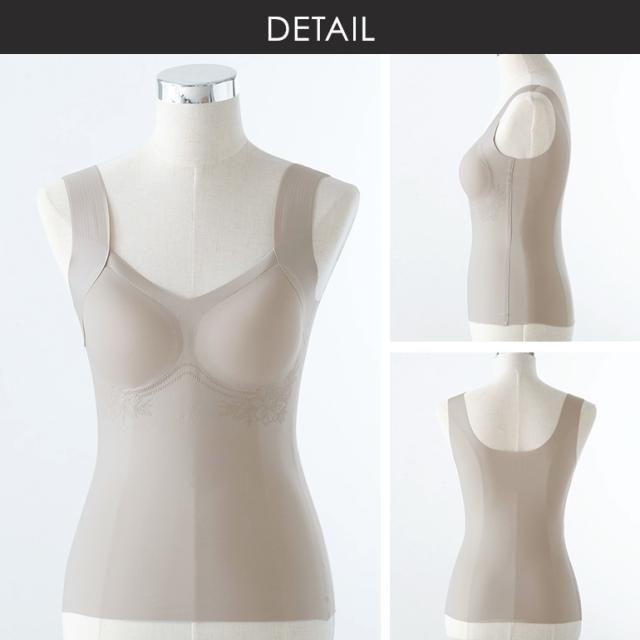 羽根のような軽やかなつけ心地と最小縫い目のノーブラ感覚は、一日中着ていてもストレスフリー。