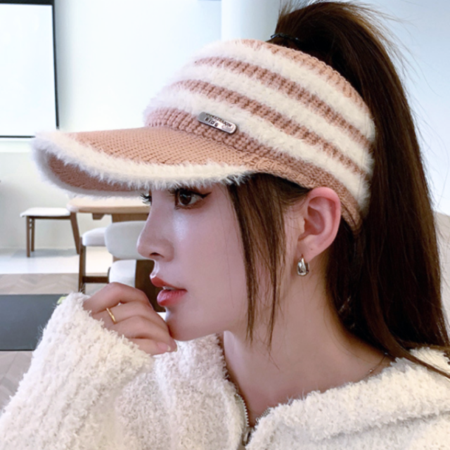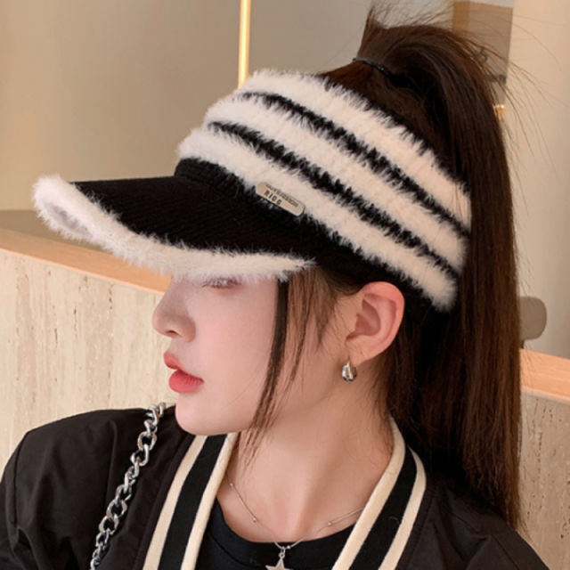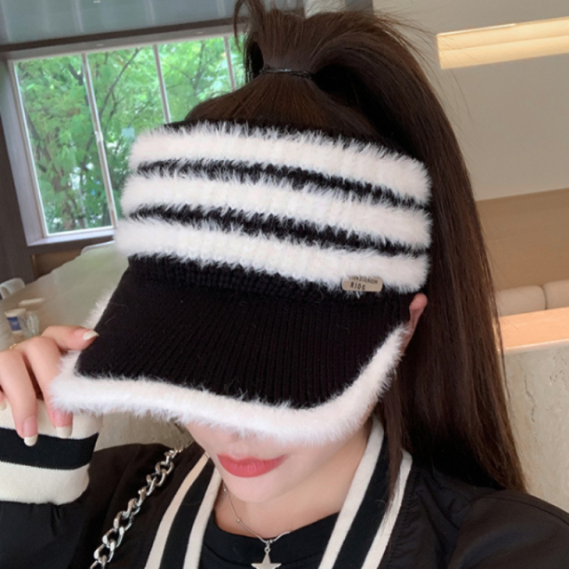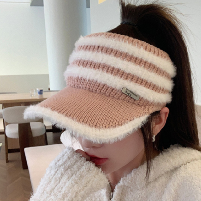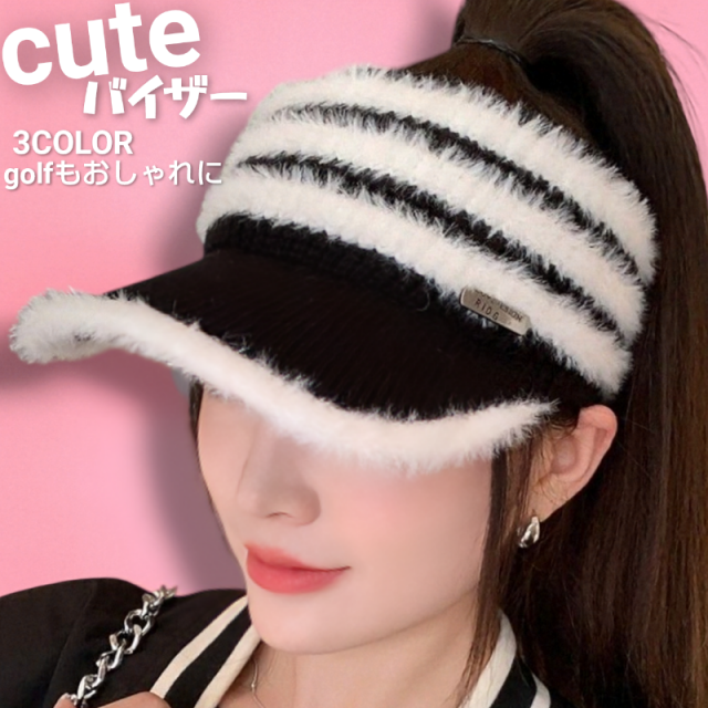 サンバイザー レディース ゴルフキャップ 帽子 ゴルフ もこもこ ニット サンバイザー バイザーキャップ 初心者 ゴルフウェア ファー ストライプ 帽子 uvカット キャップ 紫外線対策 小顔 おしゃれ 自転車 秋 冬 ブラック ホワイト ピンク ゴルフデビュー ゴルフ女子