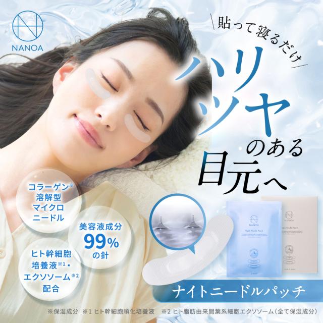 ナイトニードルパッチ 目元パッチ ニードルパッチ (ナノア)NANOA ヒト幹細胞 エクソソーム 目元パック ヒアルロン酸 ナイト 目元 ケア 4回分 8枚入