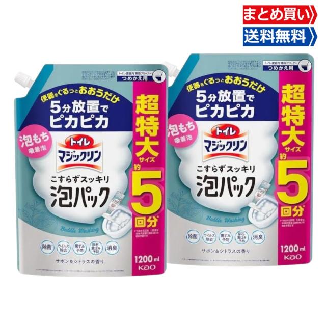 花王 トイレマジックリン 泡パック 詰め替え 超特大 1200ml×2袋 サボン&シトラスの香り トイレ用洗剤 強力洗浄 消臭 除菌 大容量