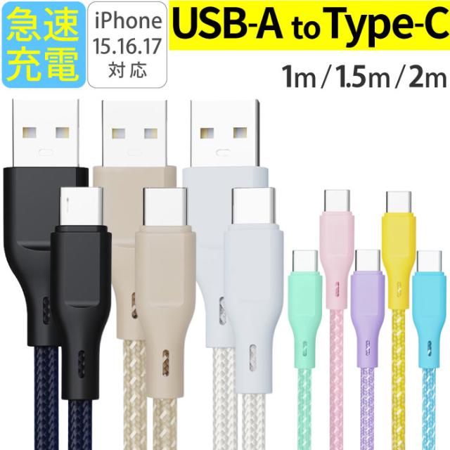 USB-A タイプC ケーブル 急速充電 1m 1.5m 2m iPhone android 充電器 充電ケーブル 高速 データ転送 断線防止 付根保護 USB-A to Type-Cケーブル USB-Cケーブル USB タイプCケーブル typec typecケーブル usbc usbケーブル iPhoneケーブル 充電コード 断線に強い 送料無料