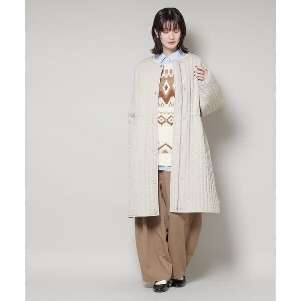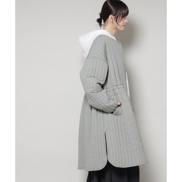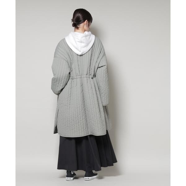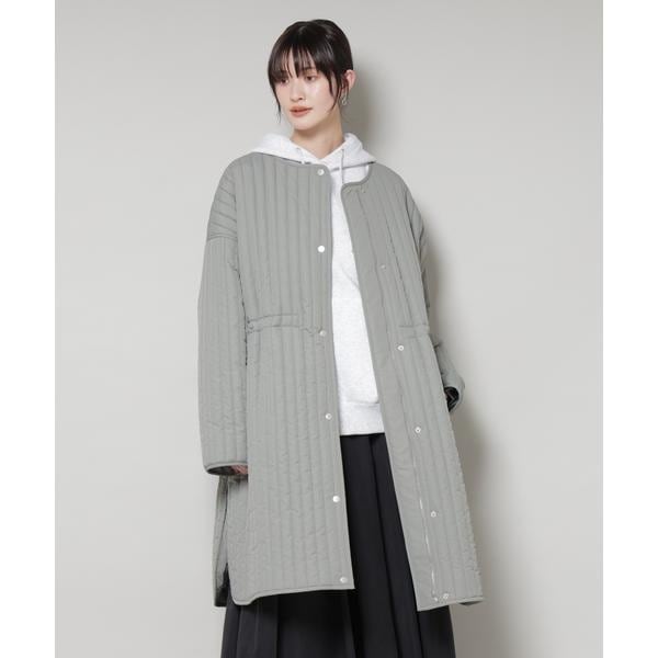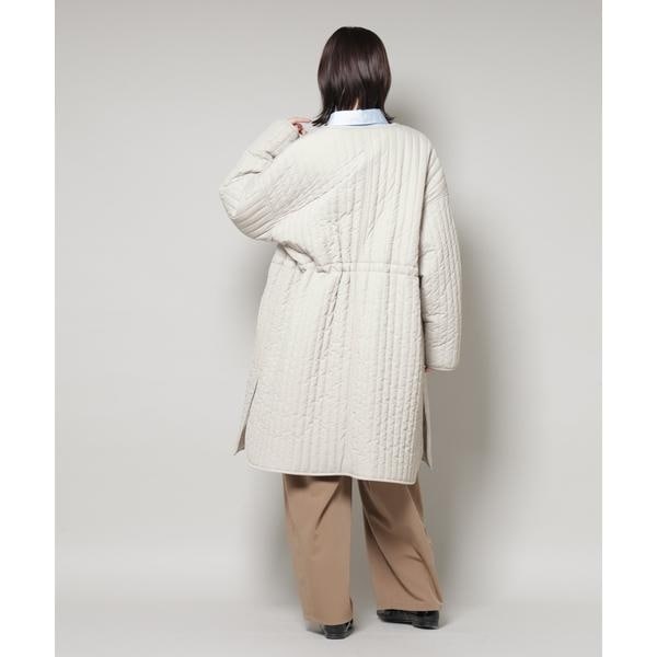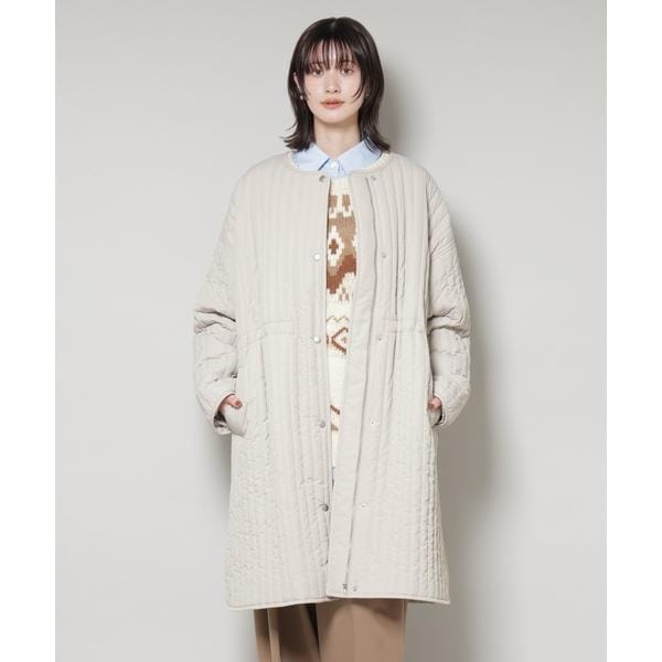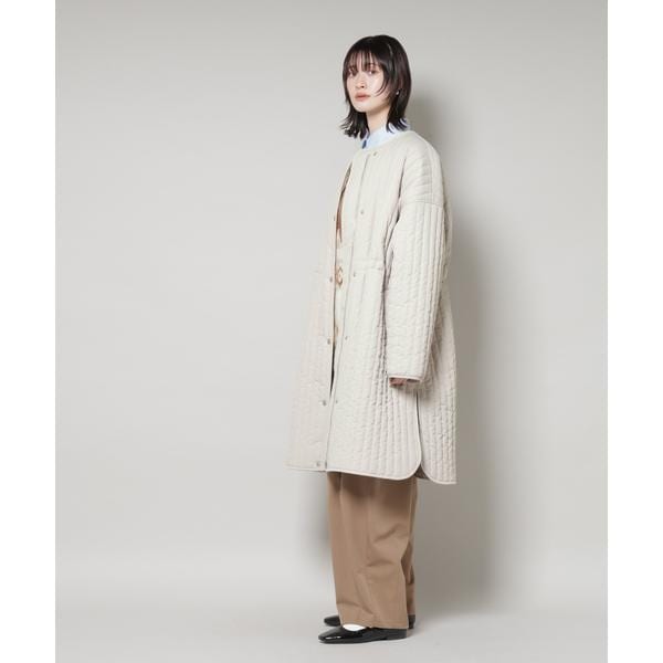 撥水加工 中綿キルティングウエストドロストノーカラーコート