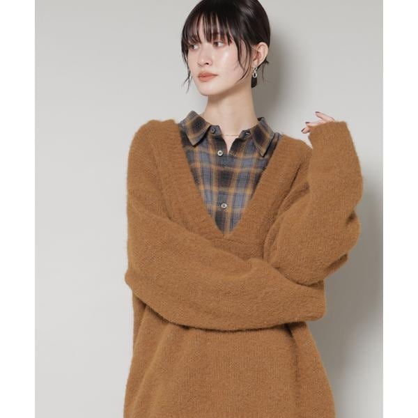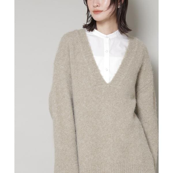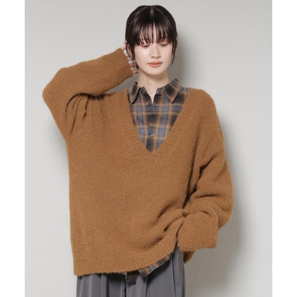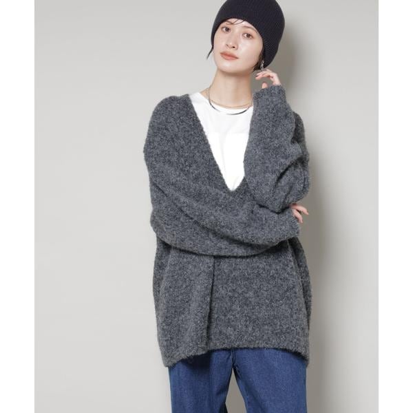 深Vネックオーバーニットプルオーバー