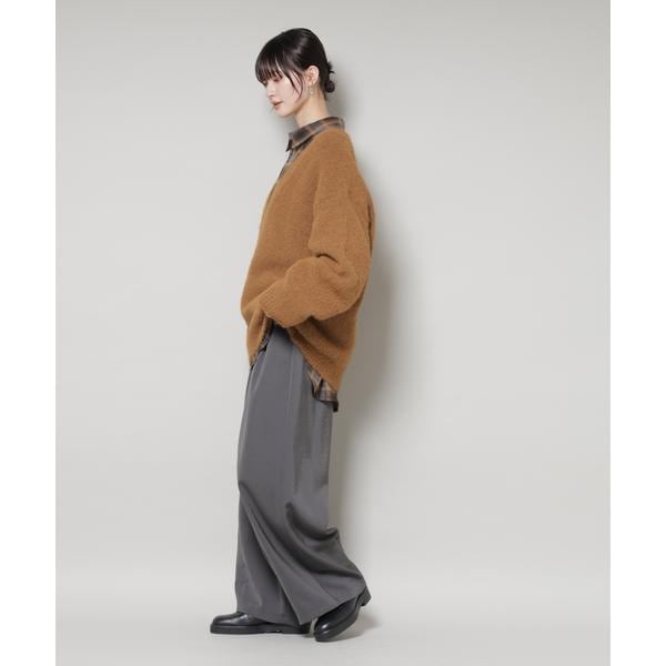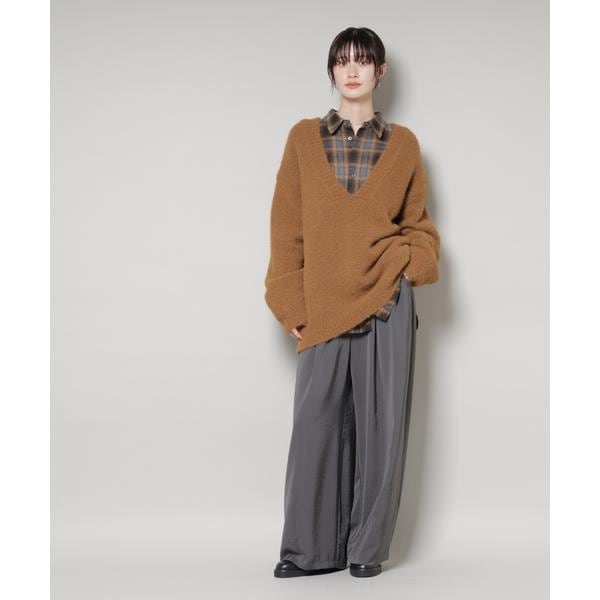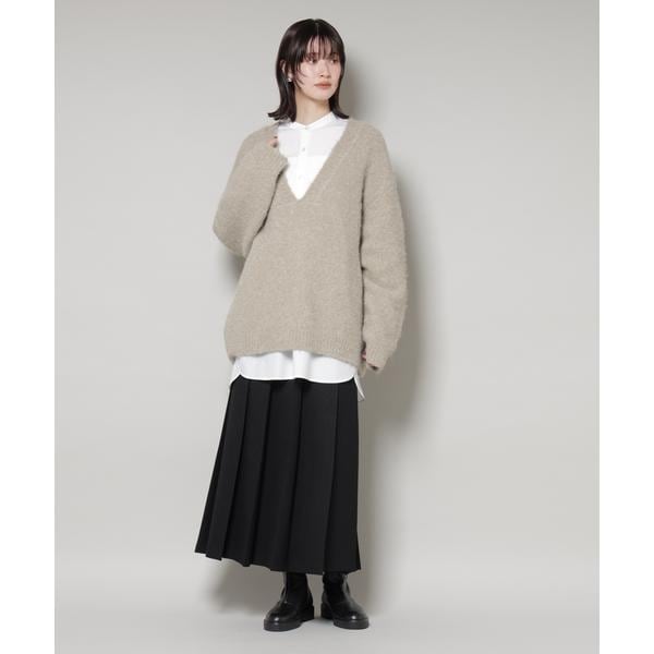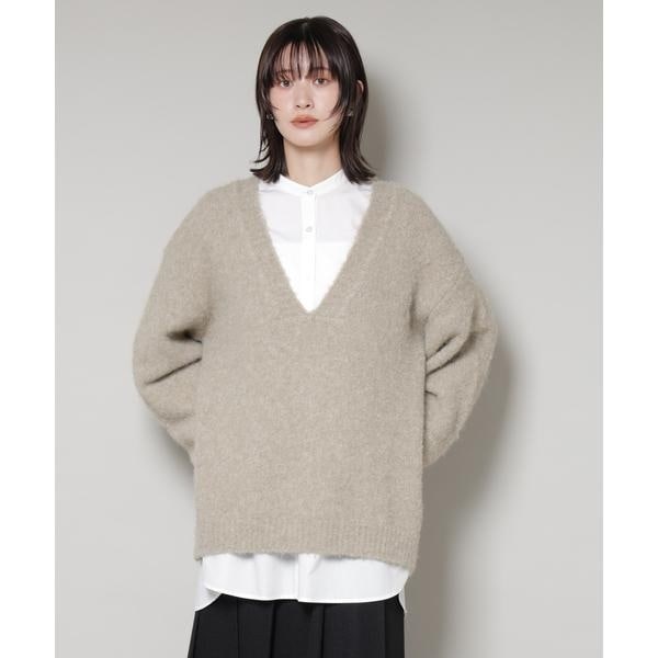 深めのVネックがデコルテを美しく見せ、抜け感をプラスするゆったりニットプルオーバー。ややオーバーサイズで身幅にゆとりがあるため、身体のラインを拾わずリラックス感のある着心地。1枚持っていればいろいろな雰囲気のスタイルを楽しめアイテムです。