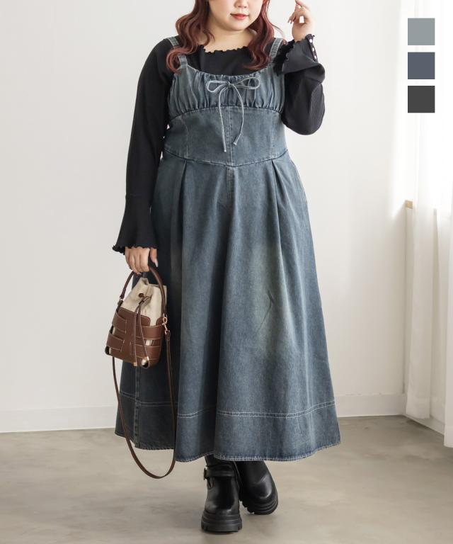 大きいサイズ/レディース/LL/3L/4L/CLETTEオリジナルビスチェ風デニムワンピース