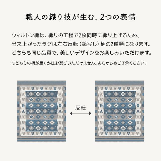 | ■プリントでは出せない、本物の上質感。糸から模様を織り上げるウィルトン織だから、色の出方や光の当たり方で立体感が生まれます。 ■表面のパイルには「フリーぜセット加工」を採用しており、ふんわりとした立体感と、へたりにくい弾力を実現しました。 ■1平方メートルあたり105,600ノットのパイルで、ふんわり柔らか。光を受けて立体感が生まれ、肌触りも長く続く、贅沢なラグです。 ■ウィルトン織りは、織りの工程で2枚同時に織り上げるため、出来上がったラグは左右反転(鏡写し)柄の2種類になります。どちらも同じ品質で、美しいデザインをお楽しみいただけます。 ※どちらの柄が届くかはお選びいただけません。あらかじめご了承ください。 |