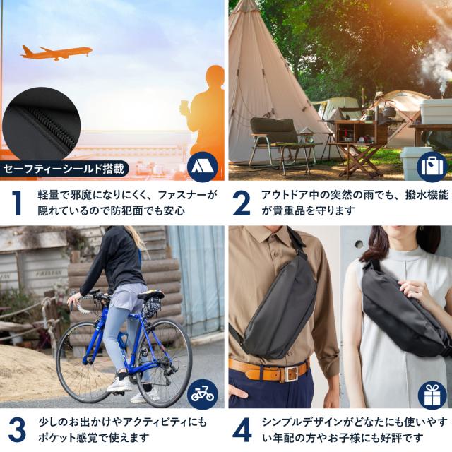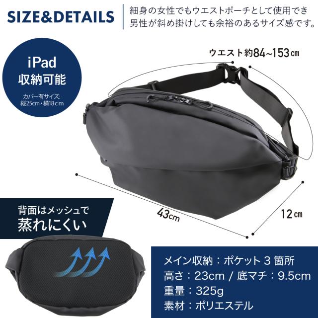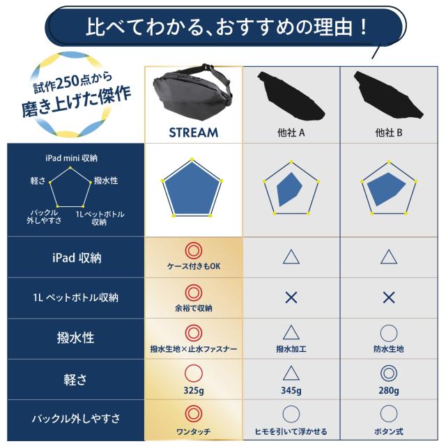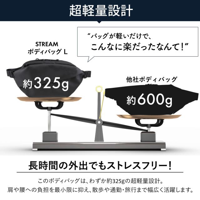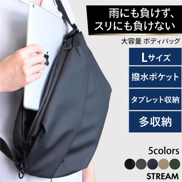 ボディバッグ Begin!雑誌掲載 ウエストバッグ Lサイズ ウエストポーチ ショルダーバッグ 斜めがけバッグ メンズ レディース 大容量 撥水ポケット 止水ファスナー 撥水ハイドロシールド 多機能 ユニセックス コンパクト 軽量 stream