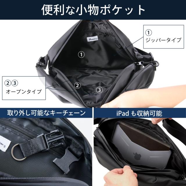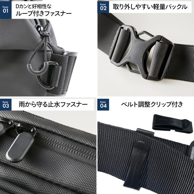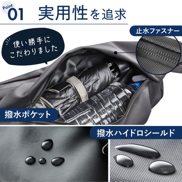 ※止水ファスナー・撥水ポケットは、水の侵入を抑える撥水仕様ですが、完全防水ではありません。