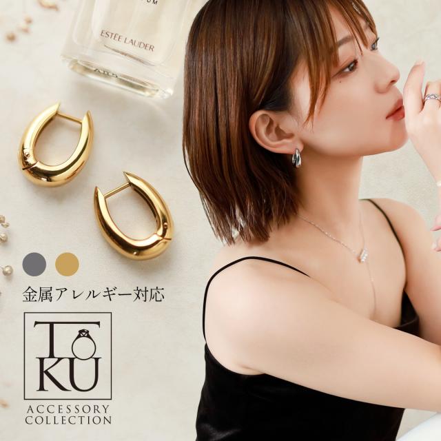 耳元で存在感をアピールする大ぶりのフープピアス、サージカルステンレスで登場。ぷっくりとボリュームのあるシルエットでありながらも、大きすぎず、様々なコーデに合わせやすいピアスです。このデザイン性でこの価格はかなりの高コスパです!