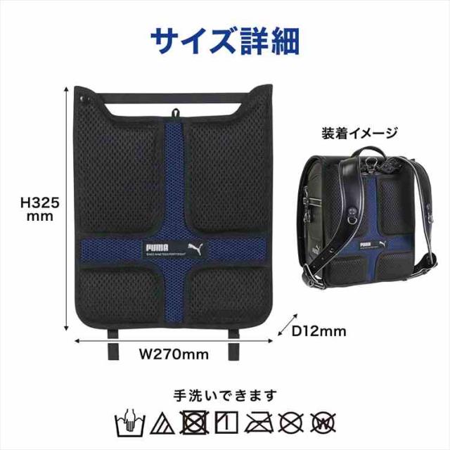 ランドセル用 背中 メッシュ パッド PUMA プーマ 小学生 小学校 男の子 子供 キッズ 洗える 快適 ランドセルパッド 汗取りパッド 背当て パット クッション 通気性抜群 肩 腰 負担軽減 蒸れない 疲れにくい 蒸れ防止 汗 暑さ対策 通学 登下校 黒 ブラック ネイビー ブランド