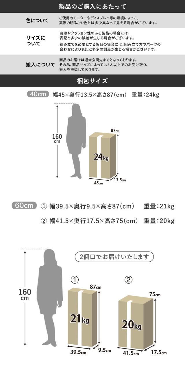 【梱包1】幅39.5×奥行9.5×高さ87(cm)【梱包2】 幅41.5×奥行17.5×高さ75(cm)