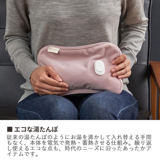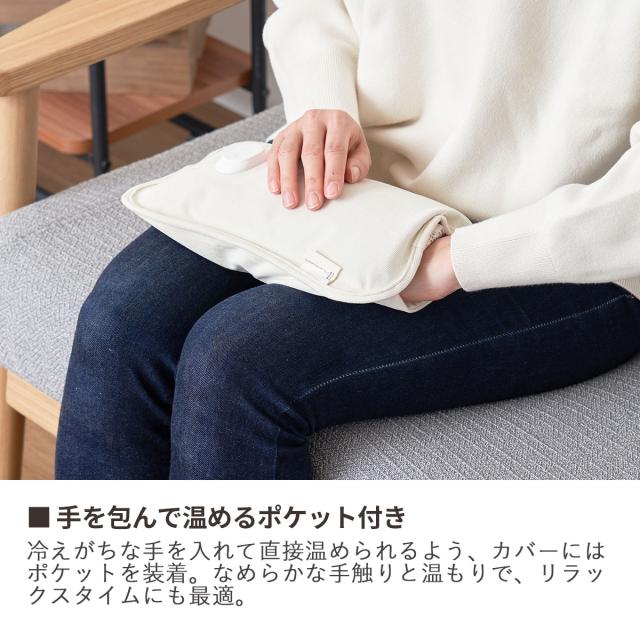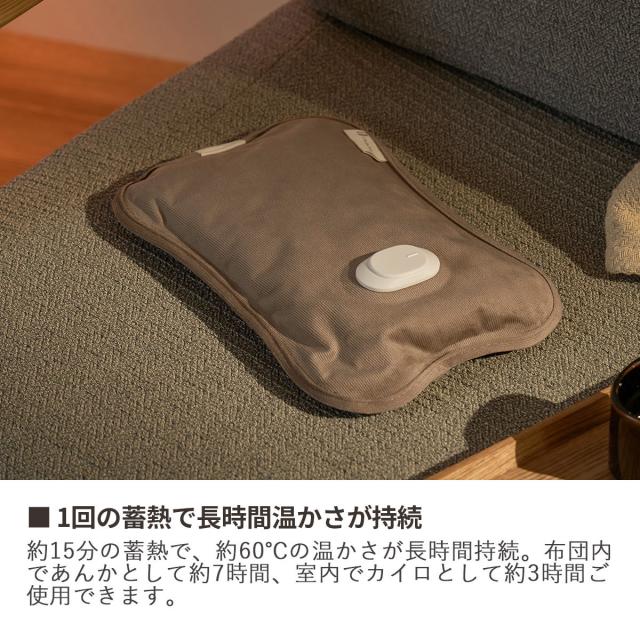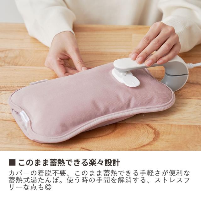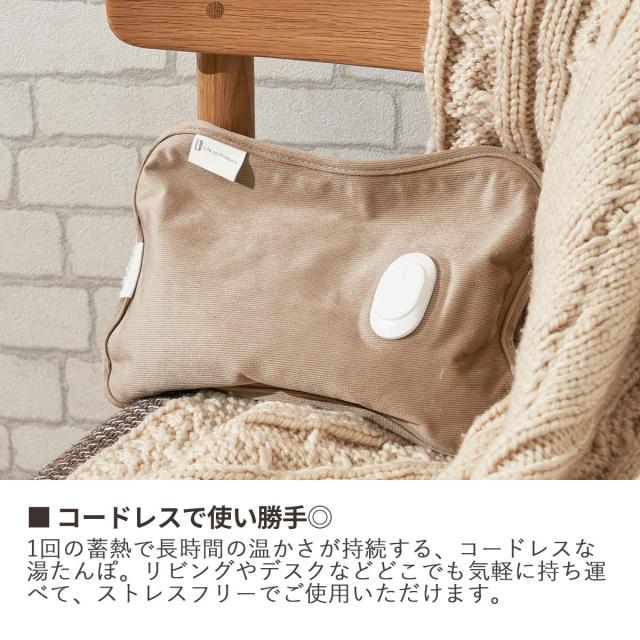 カバー着脱不要で蓄熱できる手軽さと、冷えがちな手を直接温められるポケットが便利な蓄熱式湯たんぽ。生地はニュアンスカラーで触り心地が良いコーデュロイ素材を採用し、インテリアにも馴染みます。