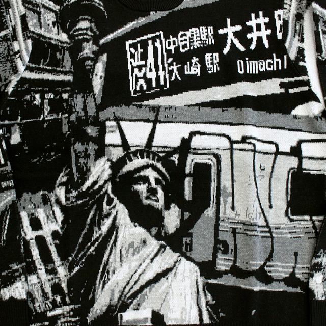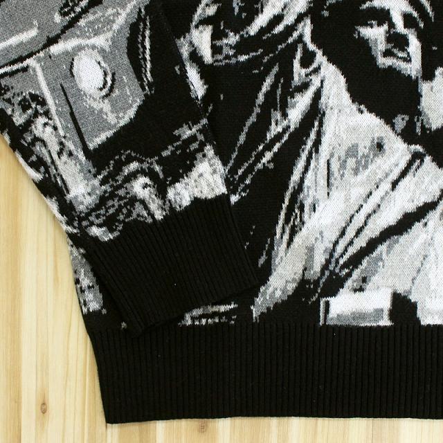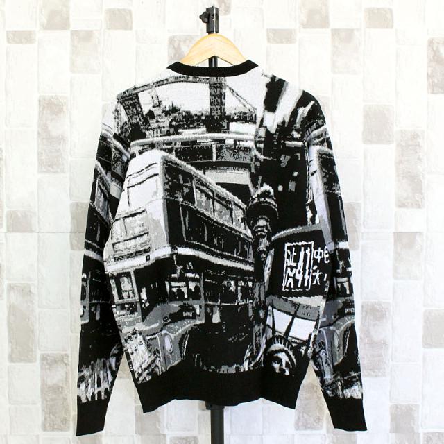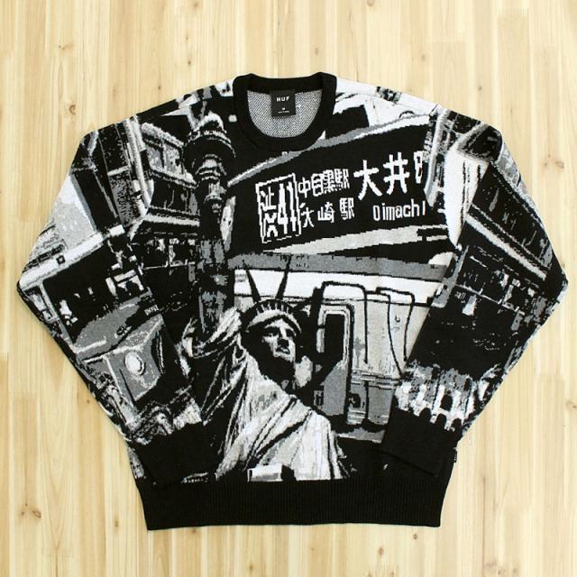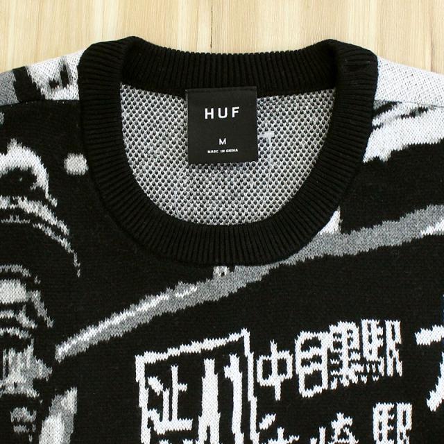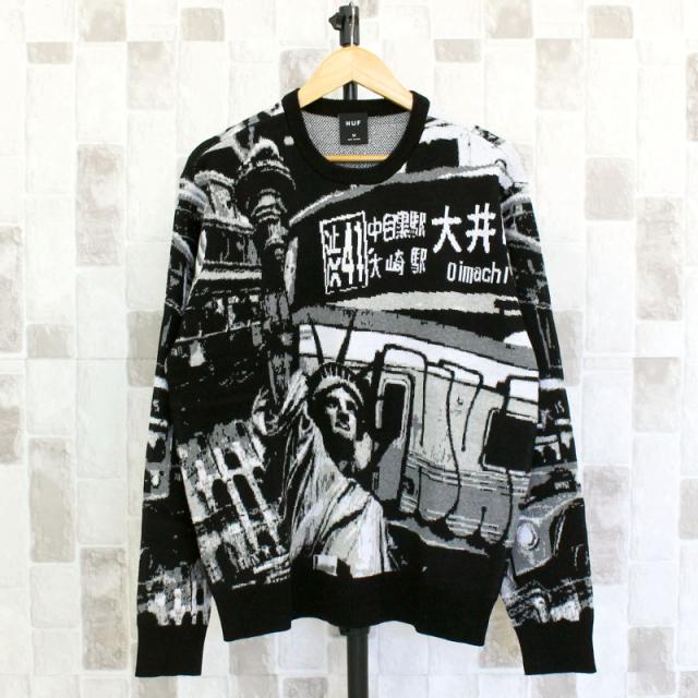 送料無料 HUF ハフ ワールドワイドコミューターセーター WORLDWIDE COMMUTER SWEATER KN00558 ブラック 長袖 トップス クルーネック ジャガードニット コットン メンズ ストリート スケーター ブランド