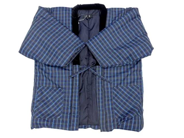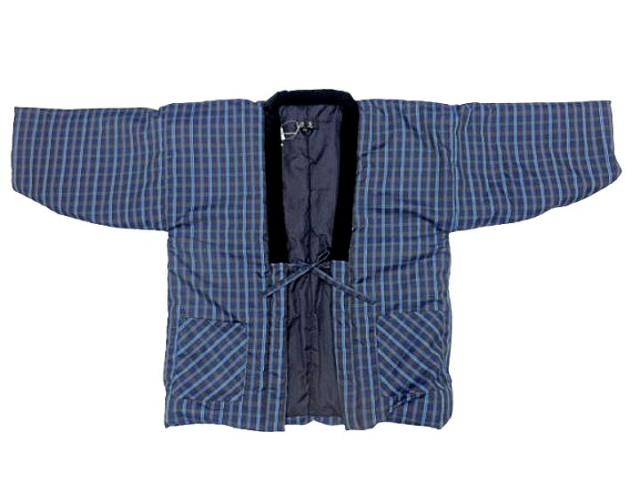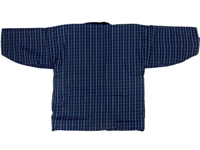 はんてん メンズ 男性用半天 フリーサイズ 男物 あったかい半纏でぬくぬく 節電 ウォームビズ 保温 エコ 暖房費節約 どてら ちゃんちゃんこ 湯冷め防止 ひえ防止 亀甲 伴天 半てん 綿入れ 綿入り 和風カーディガン 半天 袢纏 紺地 三筋格子柄 No.109