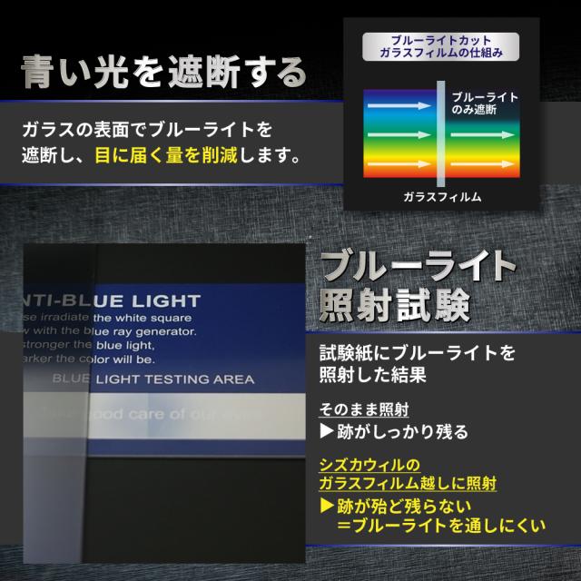 長時間画面を見過ぎて目が痛い。寝る前の暗闇でついついゲームのやりすぎ。 ブルーライト を浴び続けると「目の痛み」「肩こり」「頭痛」など身体全体に悪影響を与える場合があります。 今日からできる対策を ブルーライトカット 率32%の 目に優しいフィルム が貴方の目を守ります。