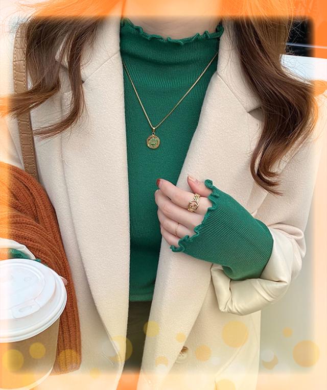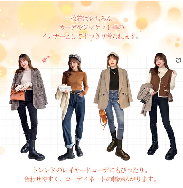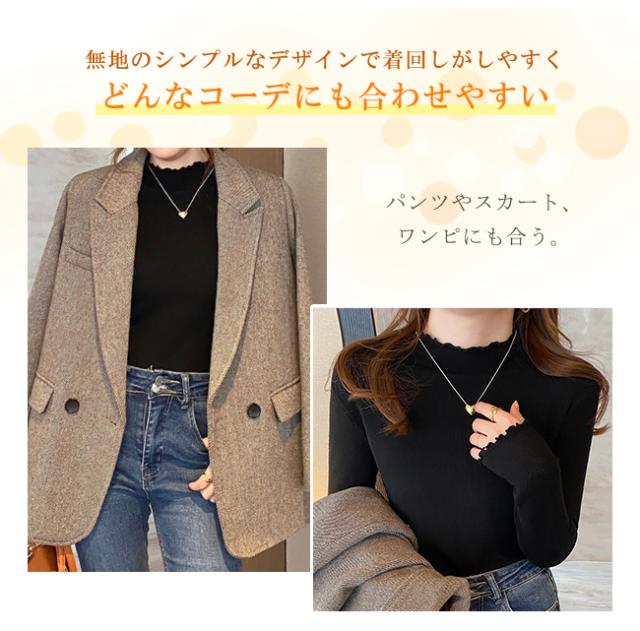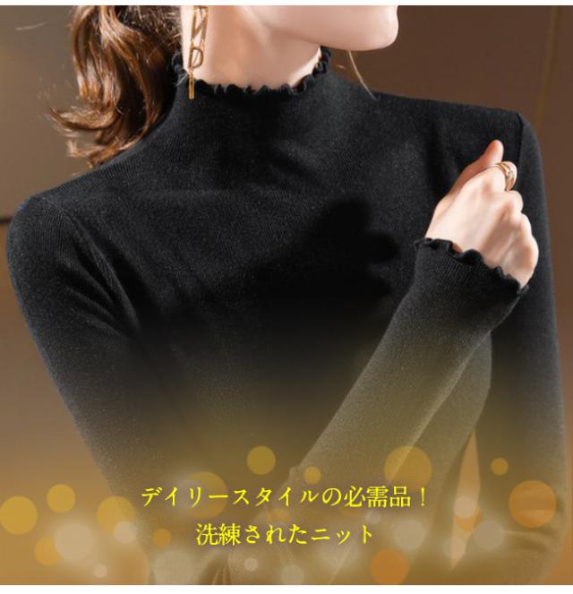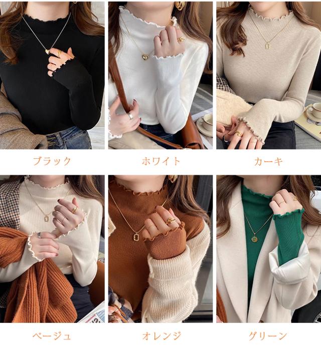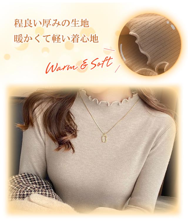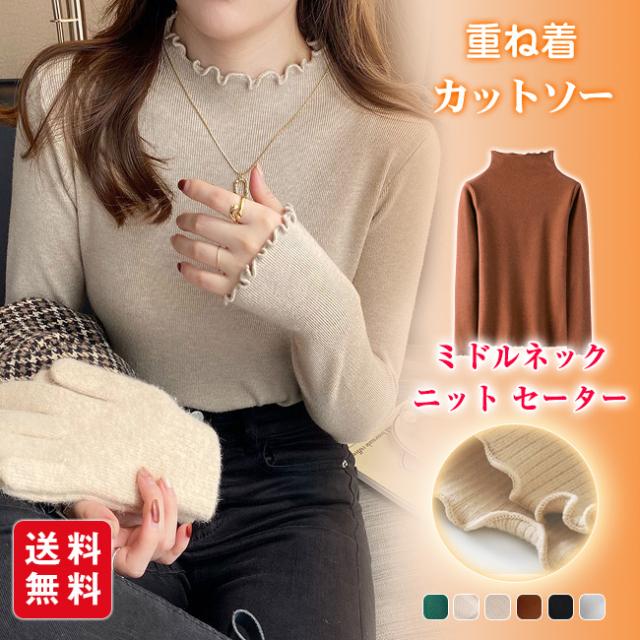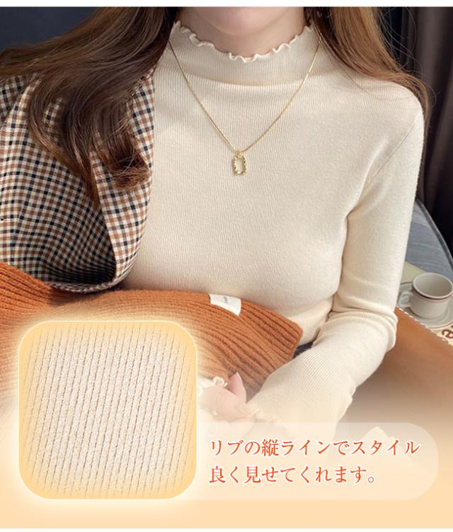 ★ニット セーター 重ね着 カットソー インナー ミドルネック 秋冬 フリルネック あったか レディース 長袖 トップス おしゃれ 無地 柔らかい OL 通勤 オフィス 着痩せ 体型カバー カジュアル★