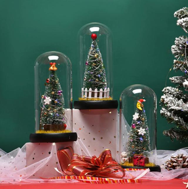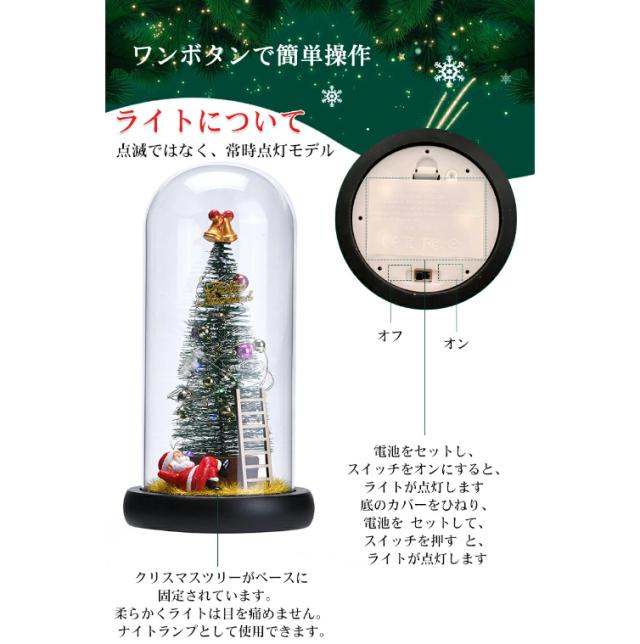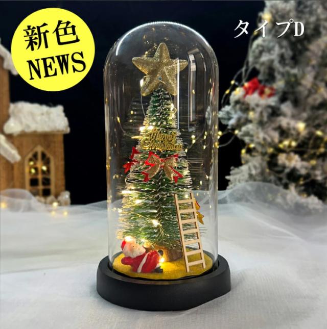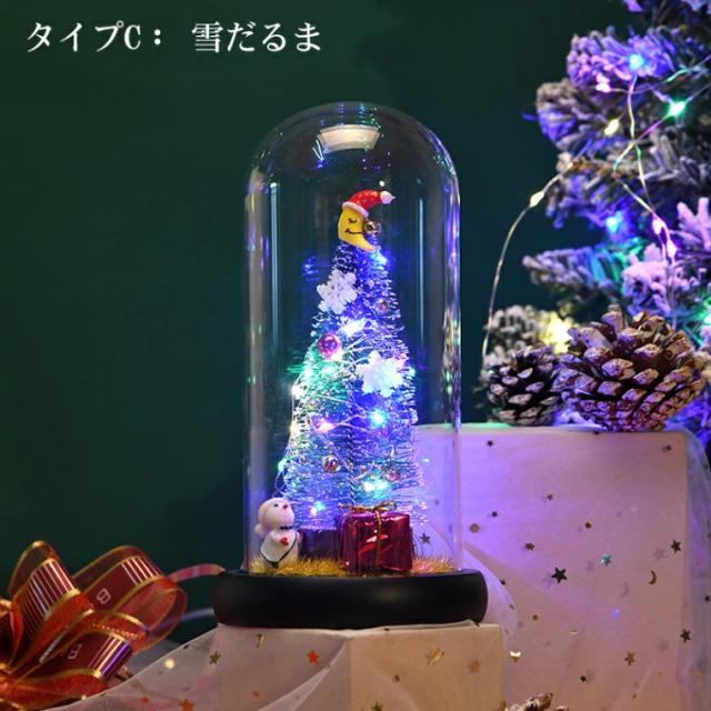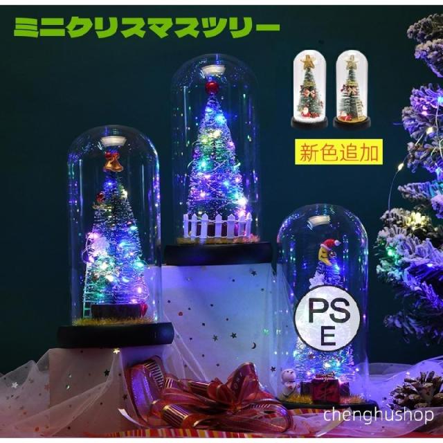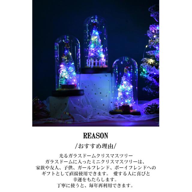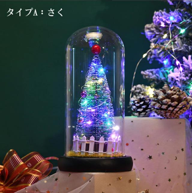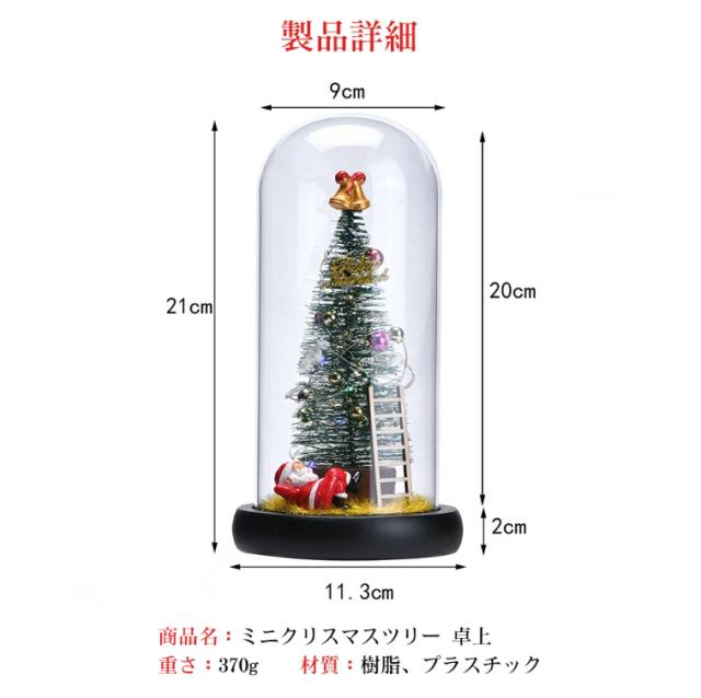 ミニクリスマスツリー クリスマスツリー 卓上 ガラス LEDライト光る 21cm ガラスドーム クリスマスツリー led おしゃれ キラキラ 北欧 卓上ツリー 小型