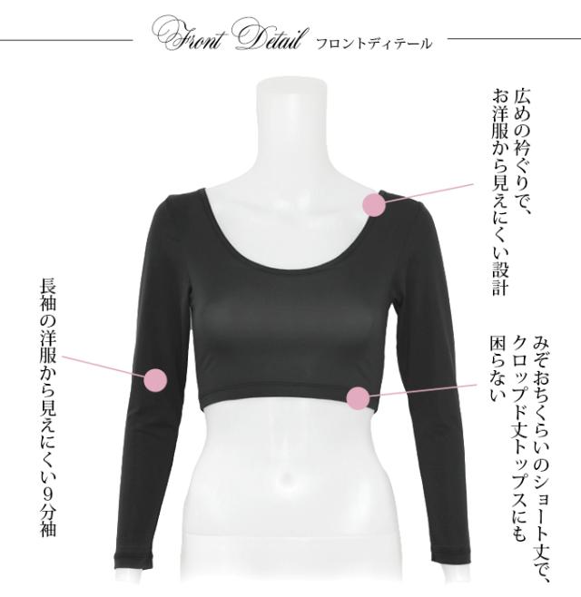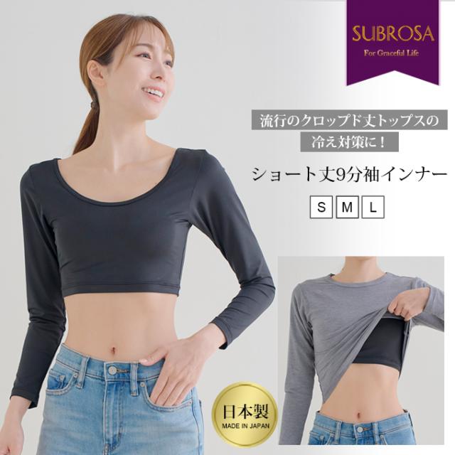 日本製 クロップド丈 ショート丈 9分袖 インナー 長袖 Uネック アウター 響かない レディース 女性用 インナーシャツ 春 秋 冬 無地 シンプル おしゃれ シャツ 黒 長袖インナー 薄手 あたたかい ウエスト 気太り 着ぶくれ 防止 アンダーシャツ 肌着 【mail】