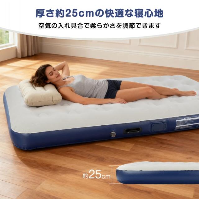 エアーベッド エアベッド シングル 充電式 ポンプ付き ライト フロック 来客用 簡易ベッド 車中泊 キャンプ 災害用 快適 寝心地 体圧分散 エアマット 折りたたみ コンパクト 持ち運び 安定構造 in070-sg