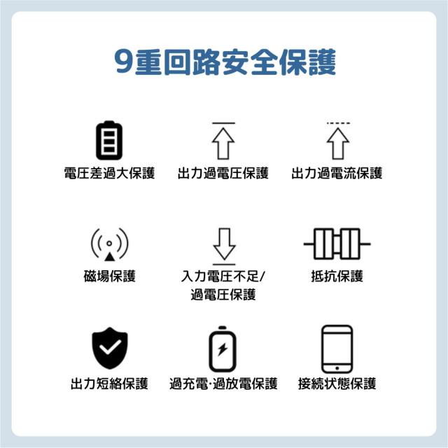 高性能ICチップと安全装置が内蔵されており、過充電・過放電・ショートの際には自動的に充電が停止します。高密度かつ大容量のリチウムポリマー電池を採用し、安心してお使いいただけます。
