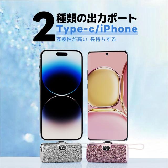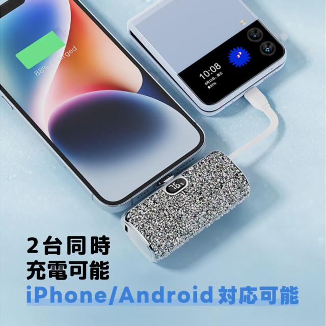 5000mAhの大容量で、PhoneとAndroidの2台同時充電も可能です。