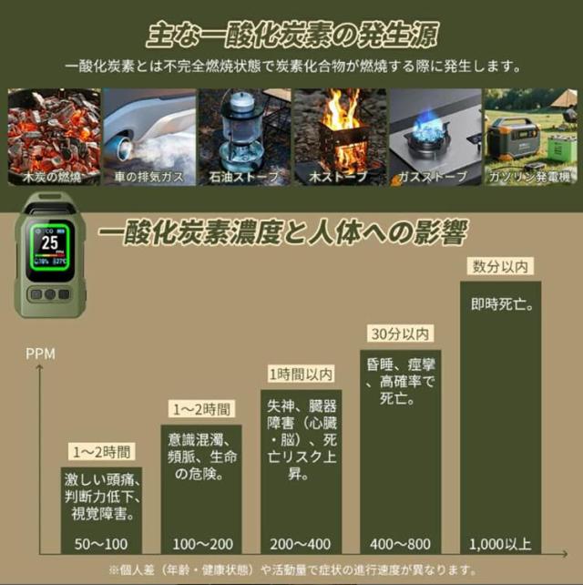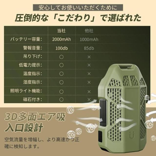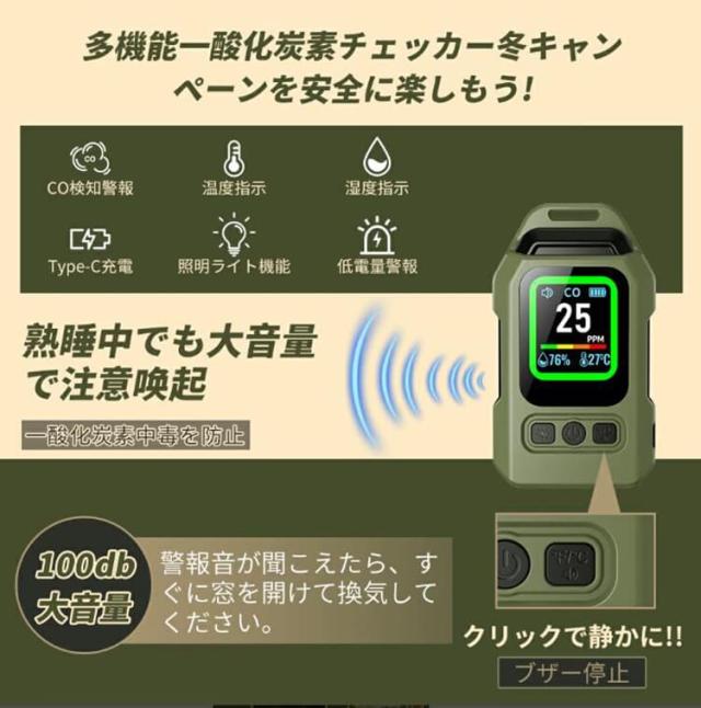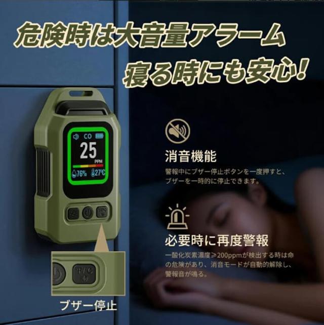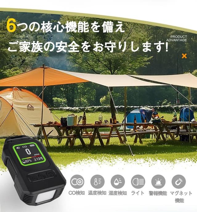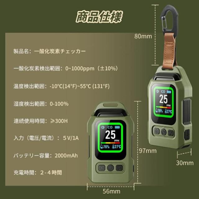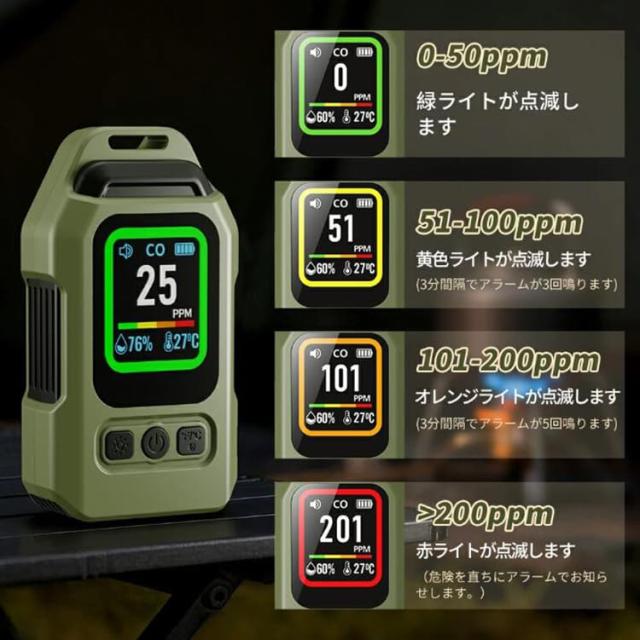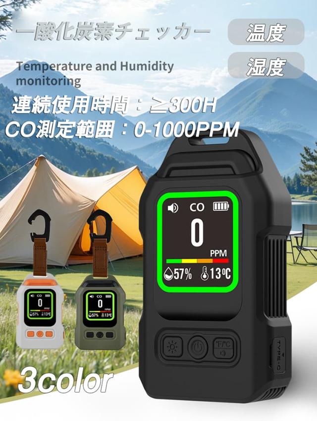 一酸化炭素 高精度CO検出器 携帯型 一酸化炭素チェッカー センサー搭載 一酸化炭素警報器 充電式 2000mAhバッテリー 磁石付き 濃/温/湿度 音声アラーム・LEDライト付き キャンプ用 チェッカー CO検知器 防水IP65 最大300h連続作動 測定器 警報機 ポータブル 長寿命 耐久性 小型 低電力 室内 家庭用 旅行用 車中泊 防災グッズ