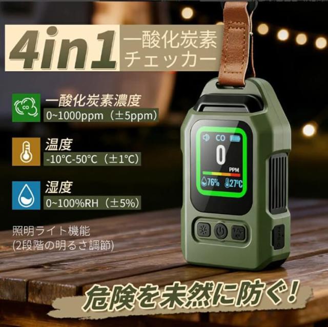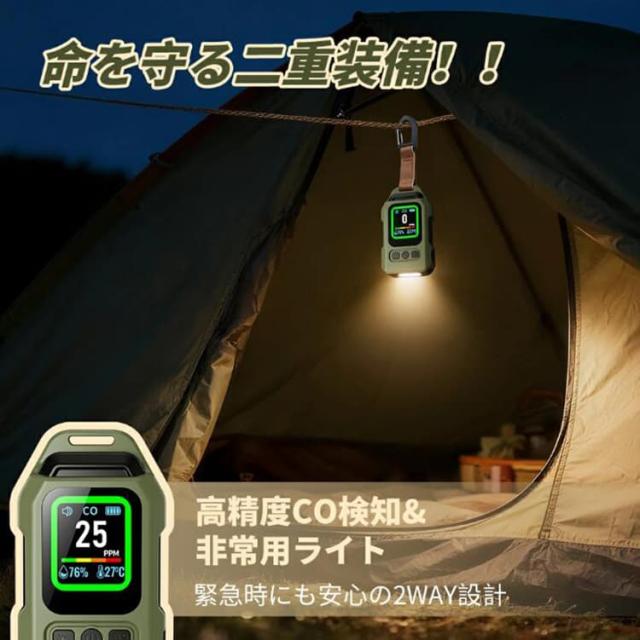 【防災必要!】一酸化炭素 一酸化炭素チェッカー LEDライト 一酸化炭素検知器 センサー搭載 一酸化炭素警報器 充電式 2000mAh 磁石付き 濃/温/湿度 音声アラーム 防水IP65 測定器 警報機 ポータブル 小型 キャンプ 室内 家庭用 旅行 車中泊 防災グッズ
