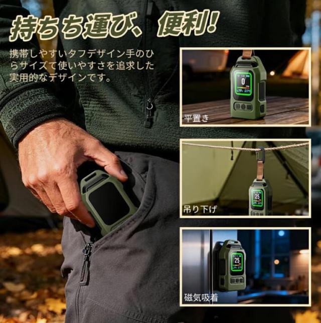 CO漏れ検知器は、携帯に便利なコンパクトデザインで、ストラップと背面のマグネット付き。金属表面に吸着したり、テントやバッグに掛けることができ、旅行やアウトドア、キャンピングカー、キッチン、ガレージなどに最適です。