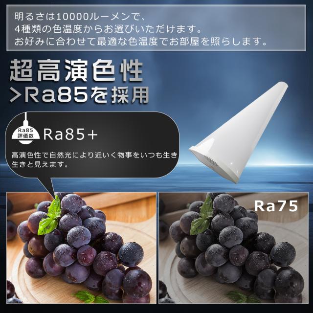 - 演色性Ra85の高性能チップを搭載。肌や物の色が自然に見えるため、作業効率の向上や目の疲れ軽減にもつながります。