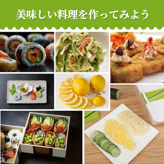 取り替えもかんたんな多機能スライサー、こちらの はおろし器、薄切り、厚切り、細切り、太切り、飾り切りなど、さまざまな用途にいかせます。多くのニーズに合わせて、楽しく料理できます、食材の魅力を最大限に引き出し、お料理の幅がグンと広がります。