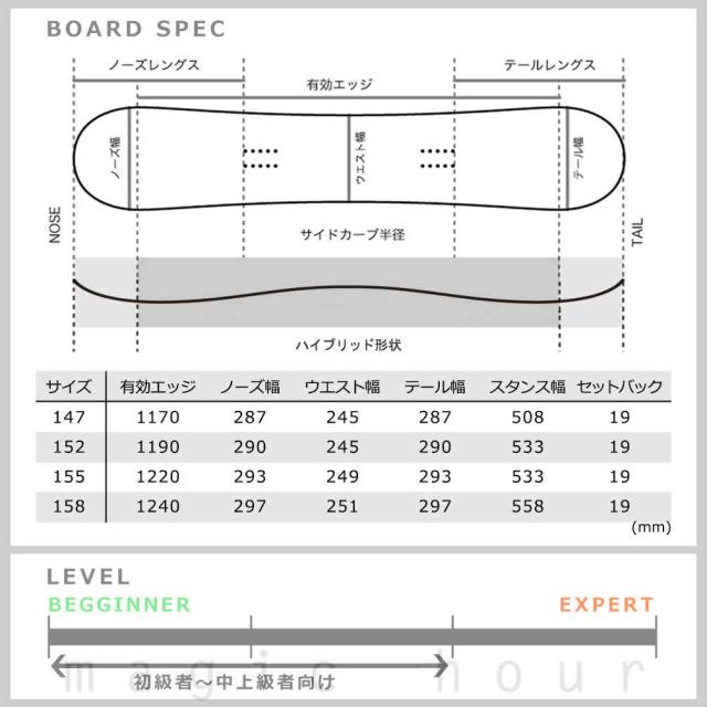逆エッジを軽減し、上達を強力にサポートする**「キャッチフリーチューン」**を搭載。コンビネーションキャンバー構造とソフトフレックスが安定した乗り心地を提供します。