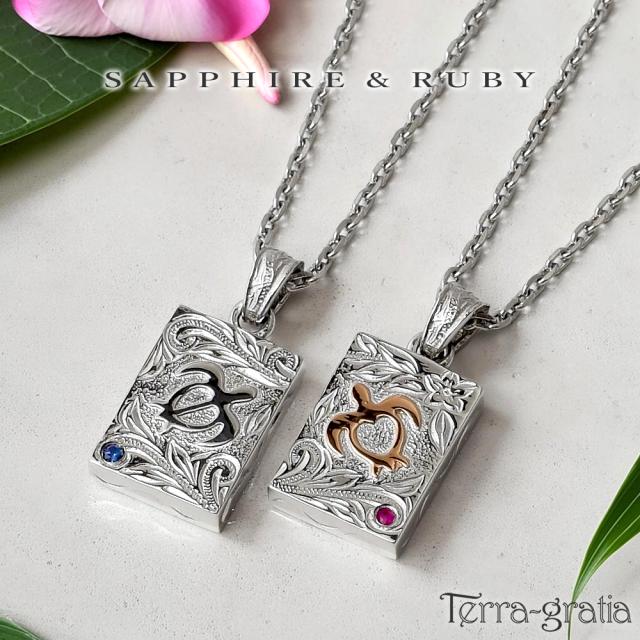 ハワイアン ペアネックレス ステンレス 刻印 ホヌ ウミガメ サファイア ルビー 金属アレルギー ギフト プレゼント 誕生日 記念日 ホワイトデー クリスマス ペア お揃い カップル