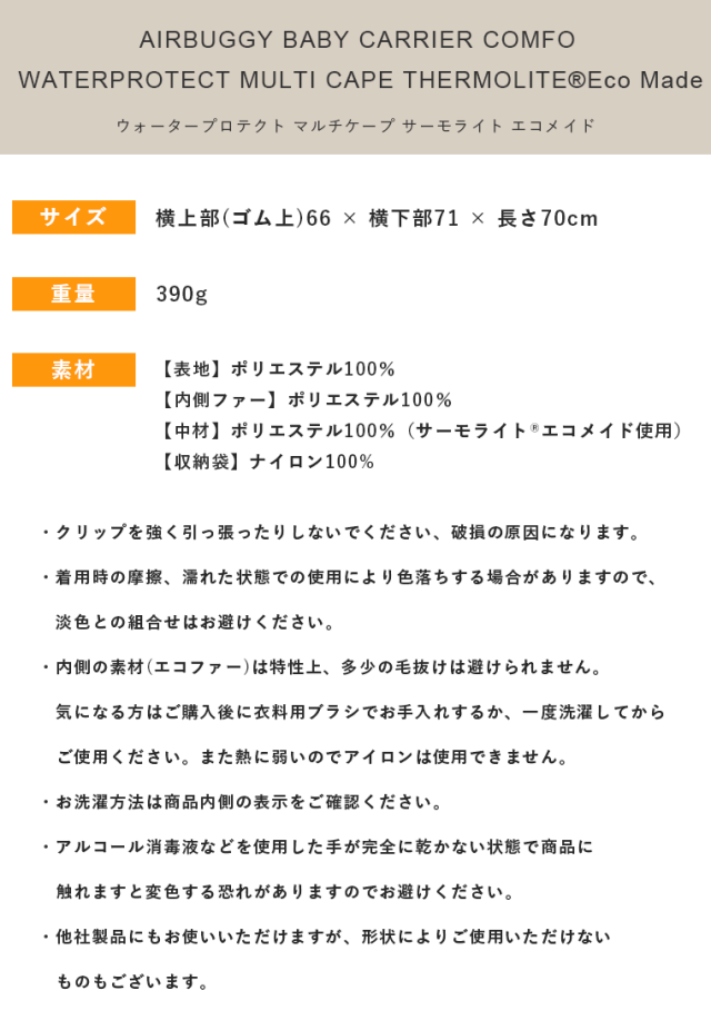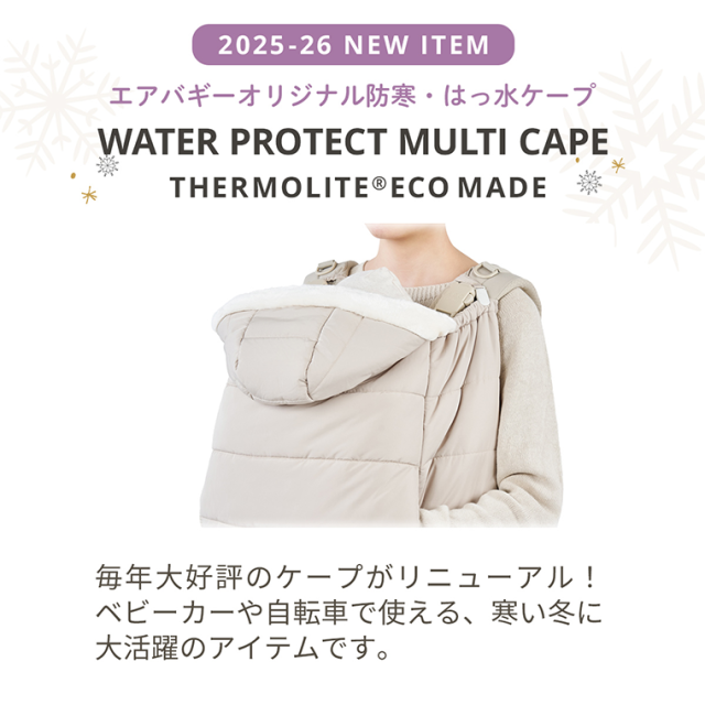 AIRBUGGY エアバギー ウォータープロテクト マルチケープ サーモライト エコメイド コンフォ用 ベビーキャリア ポケット 抱っこ紐 抱っこひも 撥水加工 オプション アクセサリー スリット 正規品 ABC COMFO あったか ポカポカ 冬用 防寒対策