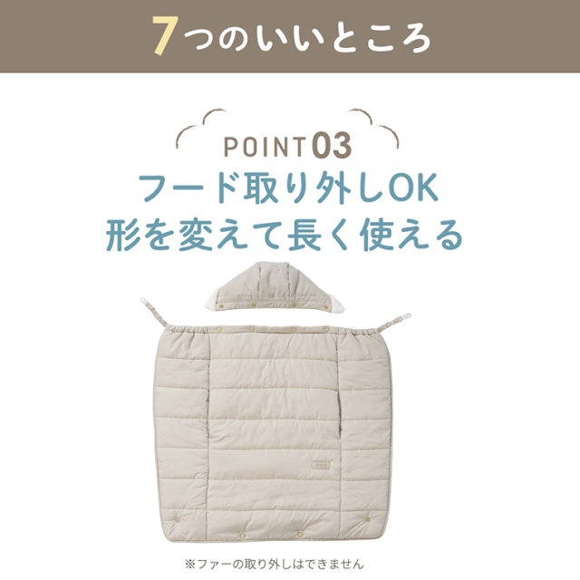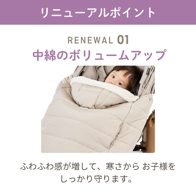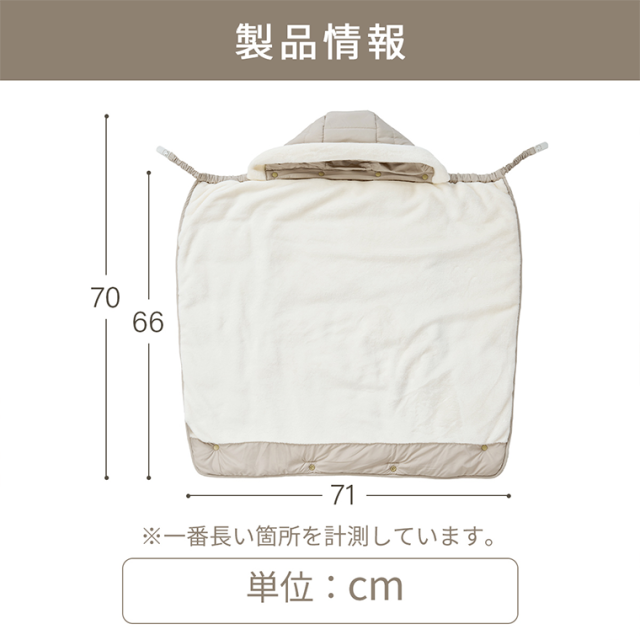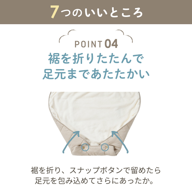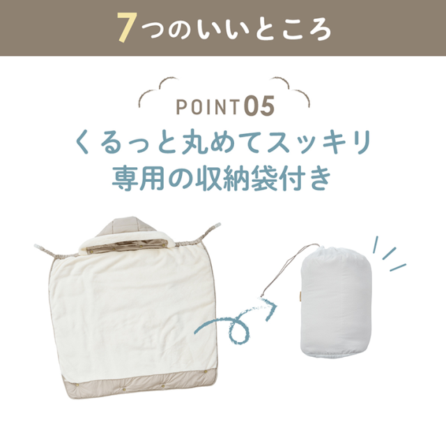 赤ちゃんを足元までやさしく包み込む、あったか防寒ケープ。