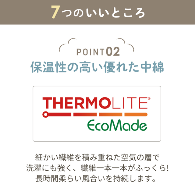 保温性の高い優れた中綿 “サーモライト エコメイド”使用。