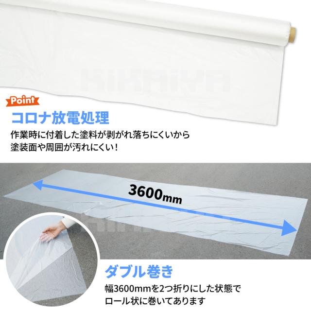 養生シート 幅3600mm 100m巻 2ツ折 ダブルタイプ 2本セット コロナ放電処理 半透明 塗装 内装 改装 工事 手で切れる HDPE KIKAIYA