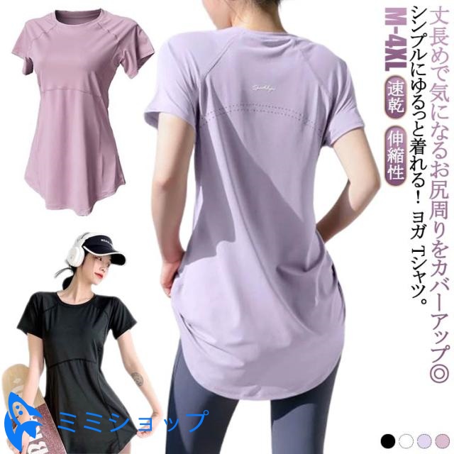 丈長め ヨガ 半袖 レディース ヨガトップス ロング丈 トップス ピラティス ウェア ヨガtシャツ ヨガウェア おしゃれ 体型カバー ヨガウェア 速乾 薄手 丈長め 伸縮性 ゆったり フィットネス ジムウェア ホットヨガ ストレッチ ダンス