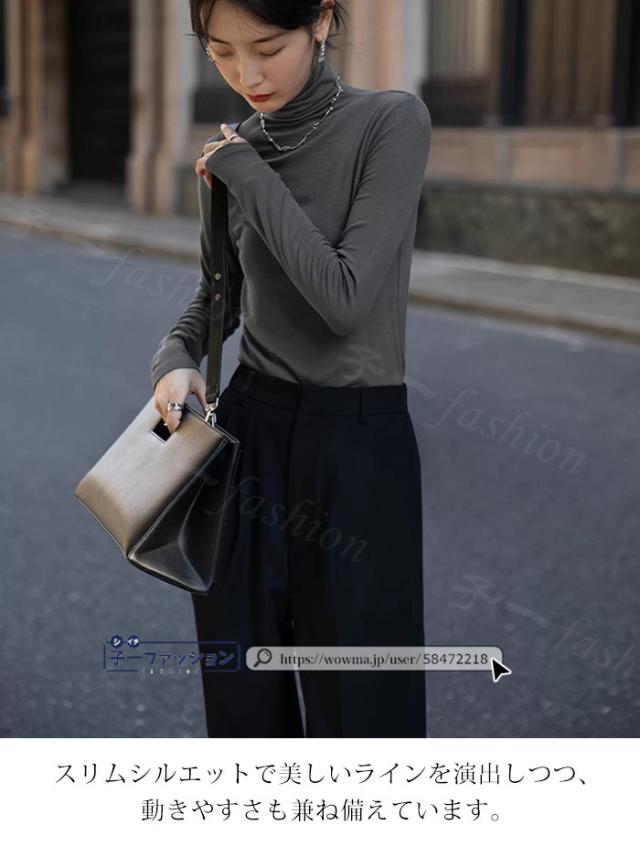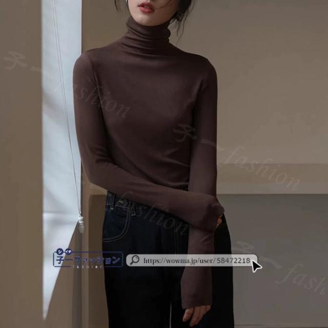 <1点あたり2,190円!2点同時購入&クーポン利用で> カットソー 長袖 薄手 ハイネック レディース トップス 選べる2タイプ 微起毛 裏起毛なし 秋冬 インナー 長袖カットソー リブカットソー タートルネック プチハイネック 無地 重ね着 レイヤード 伸縮性 小顔