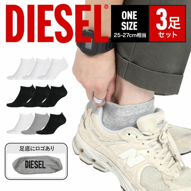 ディーゼル 靴下 メンズ 短め 3足セット DIESEL ソックス 靴下 おしゃれ かっこいい 綿 綿混 コットンストレッチ 無地 ロゴ ワンポイント ブランド 男性 紳士 プレゼント プチギフト 誕生日プレゼント 彼氏 父 息子 ギフト 記念日