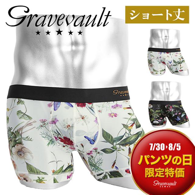 Gravevault/グレイブボールト FLORA ショート ボクサーパンツ メンズ アンダーウェア 下着 高級 国産 日本製 速乾 芸能人 愛用 フラワー 花柄 ブランド 男性 紳士 プレゼント プチギフト 誕生日プレゼント 彼氏 父 息子 ギフト 記念日 ボクサーブリーフ