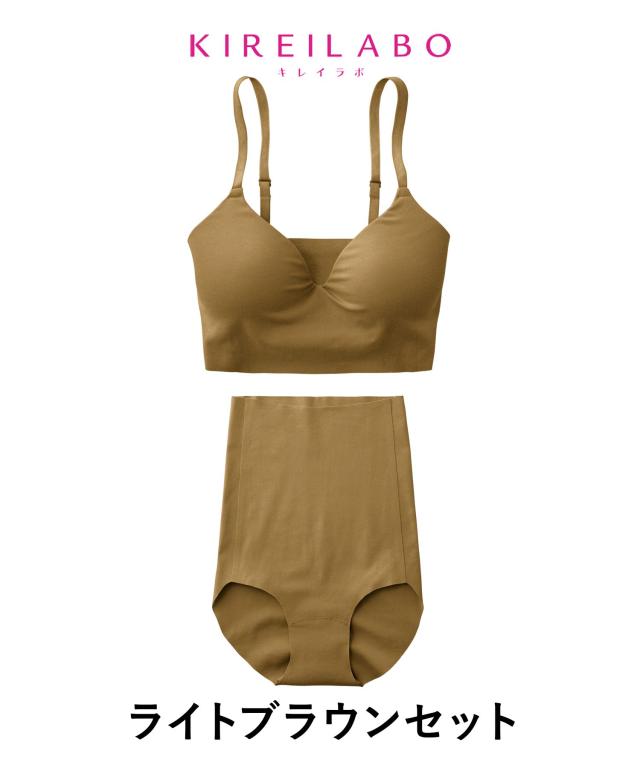 オーガニックコットン生まれの立体シルエットインナーシリーズGUNZE(グンゼ)のKIREILABO(キレイラボ)Fitte(フィッテ)レディースノンワイヤーブラ&ハイウエストショーツ上下セット。