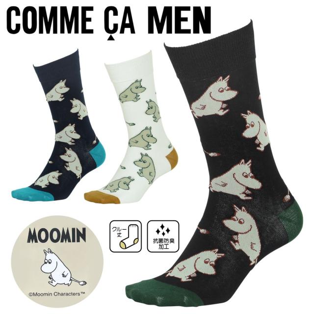 COMME CA MEN コムサメン 靴下 メンズ ムーミン コラボ ニョロニョロ 綿混 コットン ソックス クルーソックス おしゃれ かわいい キャラクター キャラ ブランド 男性 紳士 プレゼント プチギフト 誕生日プレゼント 彼氏 父 息子 ギフト 記念日