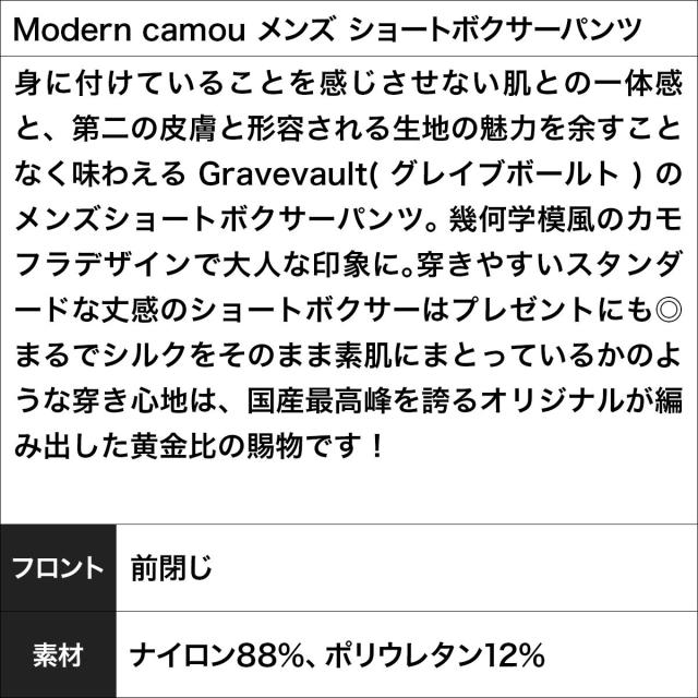 Gravevault グレイブボールト ショート ボクサーパンツ メンズ アンダーウェア 下着 高級 国産 日本製 おしゃれ 芸能人 ツルツル 速乾 迷彩 カモ柄 カモフラ ブランド 男性 紳士 プレゼント プチギフト 誕生日プレゼント 彼氏 父 ギフト 記念日 ボクサーブリーフ