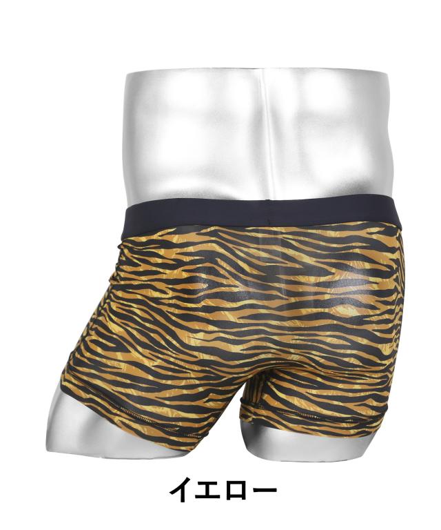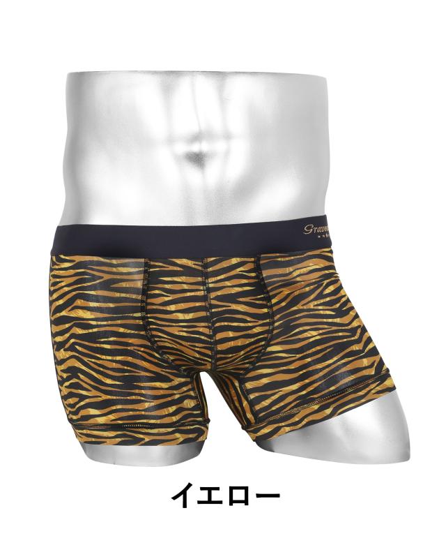 落ち着いたカラーリングのトラ柄が魅惑的なGravevault(グレイブボールト)のメンズショートボクサーパンツ。