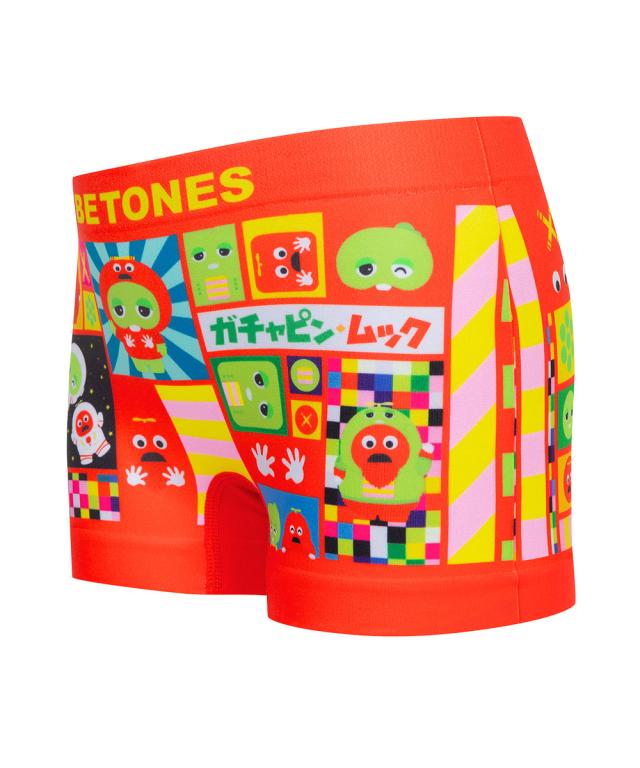 長年多くの子どもたちに愛され、勇気を与え続けるヒーロー、ガチャピン・ムック!BETONES(ビトーンズ)のキッズボクサーパンツ。