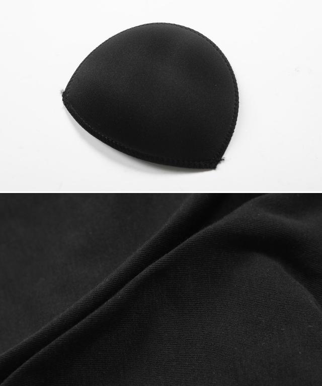 汗をすばやく吸収・発散する吸汗速乾素材を使用し、トレーニング中も快適さをキープ。やわらかく伸びの良い綿混ストレッチ素材がバストにやさしくフィットし、パッド入りで一枚でも安心。