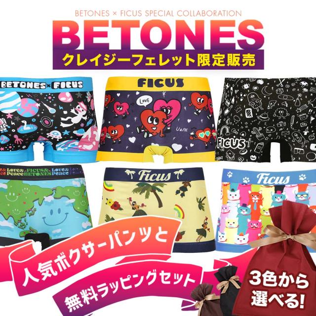 BETONES ビトーンズ×FICUS フィークス ボクサーパンツ メンズ ブランド 下着 コラボ 誕生日プレゼント 彼氏 父 旦那 ギフト only 速乾 蒸れない タグなし すぐ乾く 洗濯タグなし 誕生日 プレゼント 50代 60代 シームレス ボクサーブリーフ