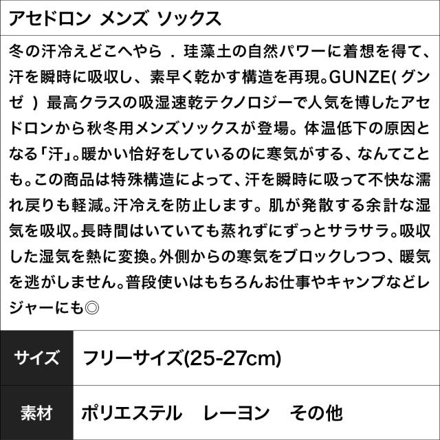 GUNZE グンゼ 靴下 メンズ ソックス アセドロン 吸湿速乾 汗対策 蒸れない クルーソックス ビジネスソックス くつした 学生 無地 ブランド 男性 紳士 プレゼント プチギフト 誕生日プレゼント 彼氏 父 息子 ギフト 記念日