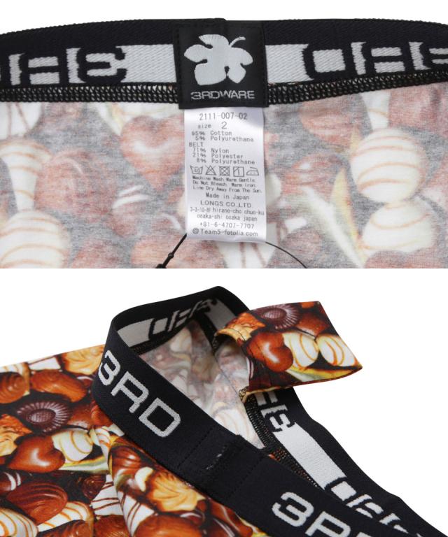 チョコレート柄が目を引く、遊び心あふれるデザインの3RDWARE(サードウェア)のメンズボクサーパンツ。