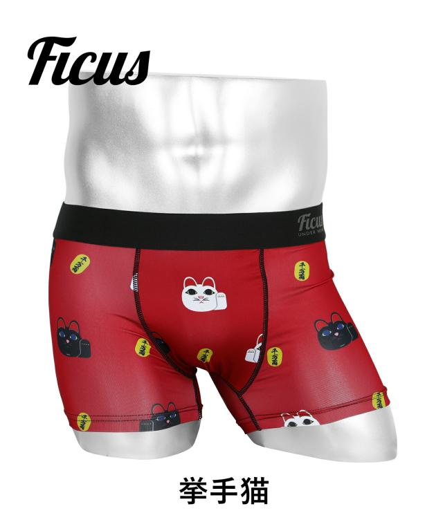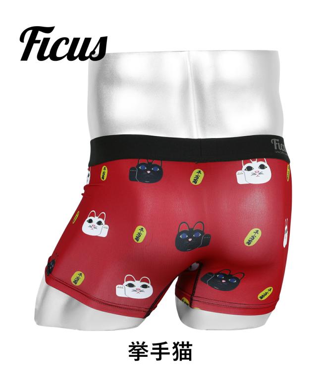 FICUS フィークス ボクサーパンツ メンズ アンダーウェア 下着 ツルツル 速乾 招き猫 縁起物 ご利益 アニマル柄 動物 ワンポイント ロゴ ワンポイント ブランド 男性 紳士 プレゼント プチギフト 誕生日プレゼント 彼氏 父 息子 ギフト 記念日